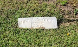 Greenwood Cemetery on Cypress Street is a historic Black burial ground whose years are shown by sunken stones, letters worn by weather and memorials broken. A few years ago, volunteers with brushes and trowels cleaned headstones to better reveal the identities of the soldiers buried there. The Civil War Trails marker at the entrance lists five U.S. Colored Troops (USCT) veterans, but the ground revealed otherwise. Researchers confirmed nine; then a tenth appeared much later. This headstone was flat, hidden beneath soil and vines. When it was cleaned, the name Major Allen G. Oden was revealed.